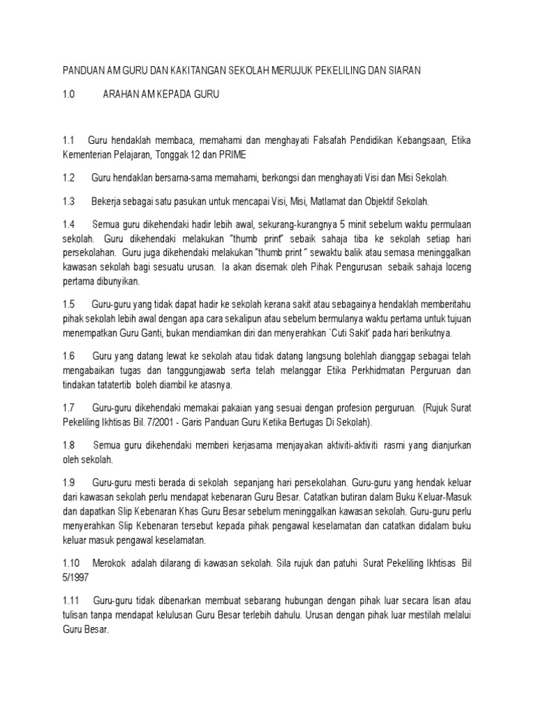 Panduan Am Guru Dan Kakitangan Sekolah Merujuk Pekeliling Dan Siaran Pdf
